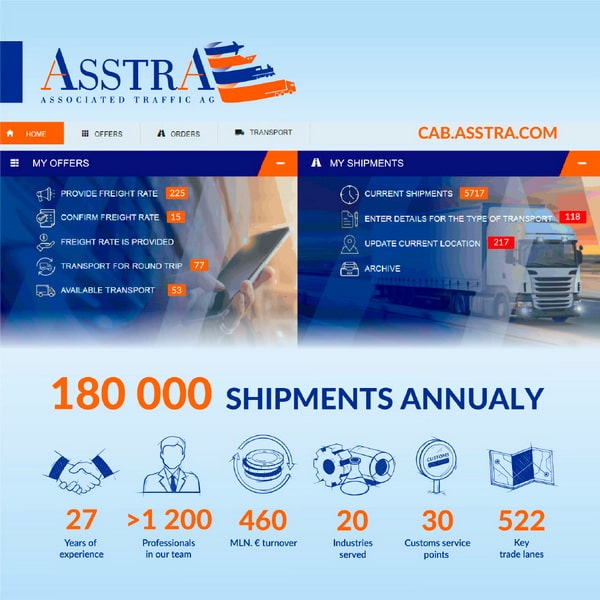 Основна мета розробки та впровадження «Кабінет перевізника» - автоматизація, підвищення якості та прозорості спільної роботи транспортних провайдерів і групи AsstrA-Associated Traffic AG.